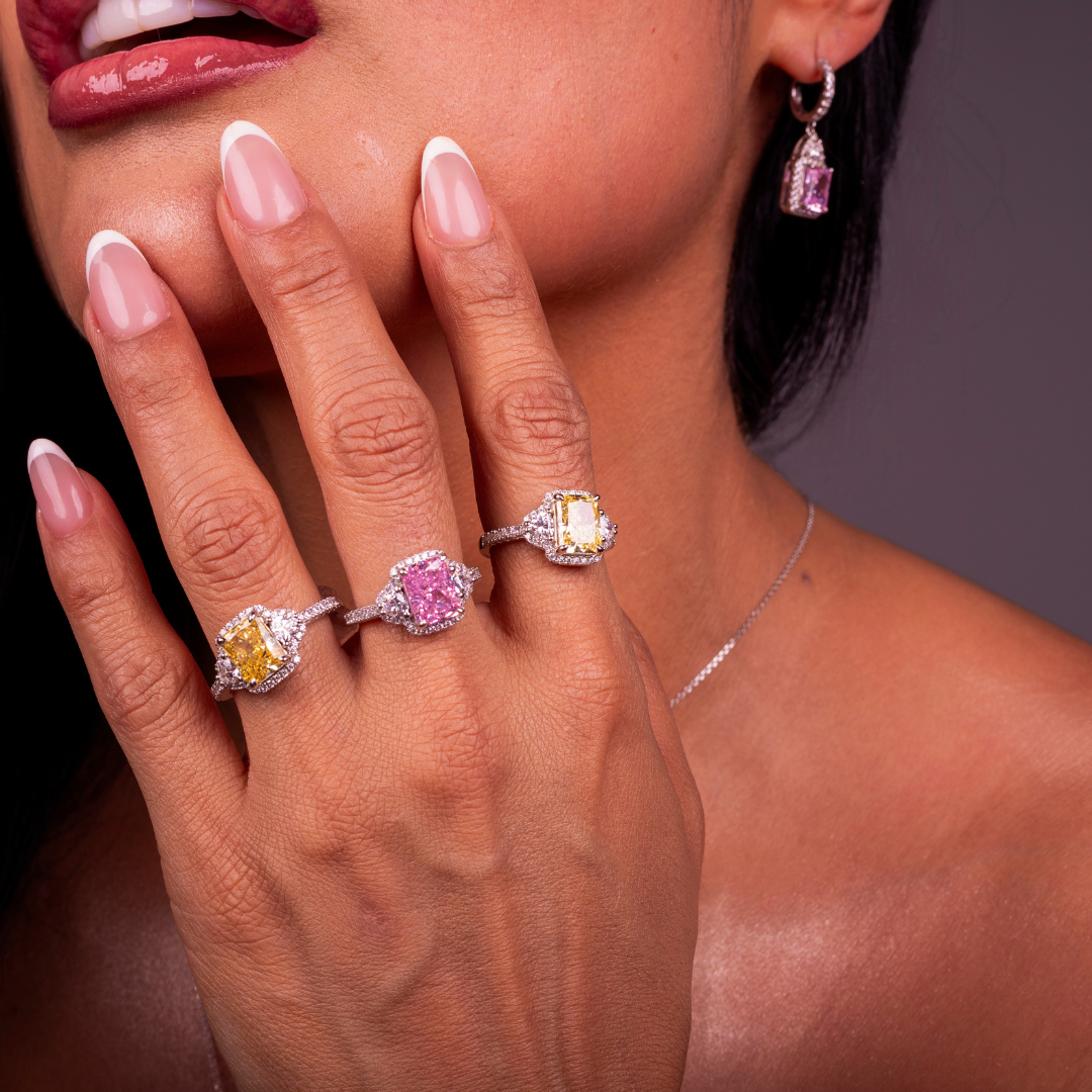 Our Crushed Ice Cut Simulated Diamond is designed to dazzle with its unique smaller, irregular facets that expertly bounce light, creating a stunning sparkling effect. Unlike traditional brilliant round cuts, this innovative design features more facets that scatter light unpredictably, resulting in a captivating blended sparkle.